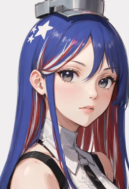 触发词为 south_dakota_kantaicollection,精简标签为 blue_hair, long_hair, multicolored_hair, red_hair, white_hair, breasts, large_breasts, bangs, headgear。当某些特征(如发色)有时不够稳定时,您可以将这些标签添加到提示词中。