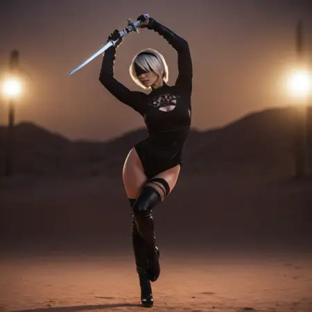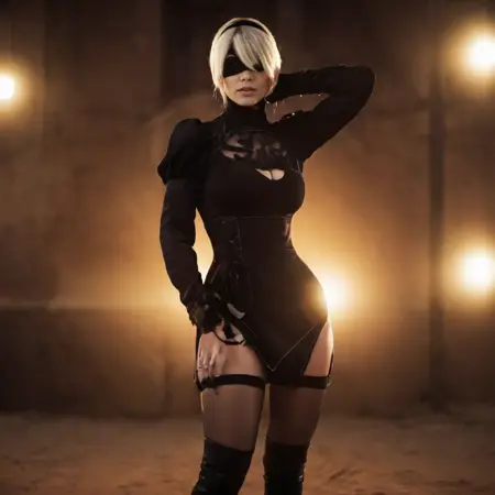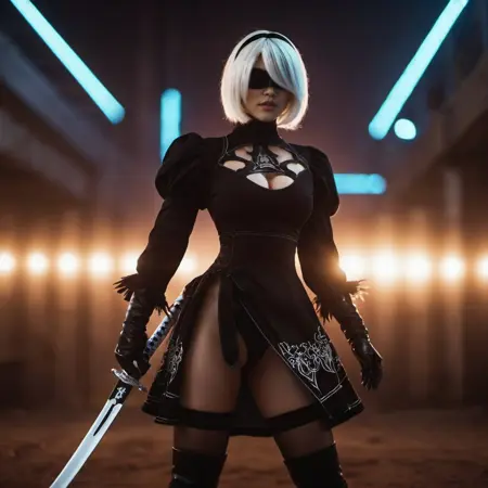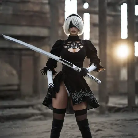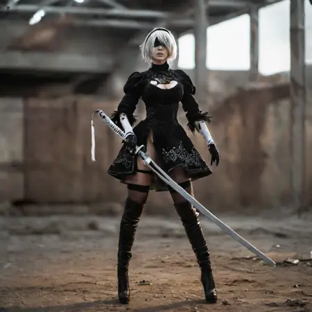 YoRHa No. 2 Type B, 일반적으로 2B로 알려진 이 캐릭터는 2017년 비디오 게임 『NieR: Automata』에 등장하는 허구적인 안드로이드로, PlatinumGames가 개발하고 Square Enix가 출판한 『Drakengard』 시리즈의 스핀오프입니다. 게임의 세 주인공 중 한 명인 2B는 외계인이 창조한 머신 라이프포름과의 대리전을 벌이는 안드로이드 특수부대 YoRHa의 병사입니다. 그녀의 스토리 아크는 YoRHa 내에서의 과거와 그녀의 파트너인 정찰용 안드로이드 9S와의 관계에 초점을 맞춥니다. 또한 애니메이션 『NieR: Automata Ver1.1a』와 같은 관련 미디어에도 등장합니다.
