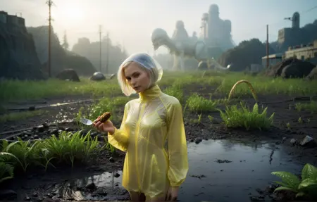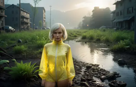 Depending on weight, it produces the micro and macro Voronoi patterns and 3D shapes. Also, it can render miniature square voxels. You can expect more contrast, crispy image with shiny wet stones, sharp thin edges. Background and nature fixtures won't be affected by this LoHa most of the times. It tries to inject big Voronoi objects into big smooth surfaces and then turn smooth landscape of subject surface into grainy micro-voxel texture.
