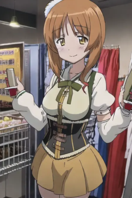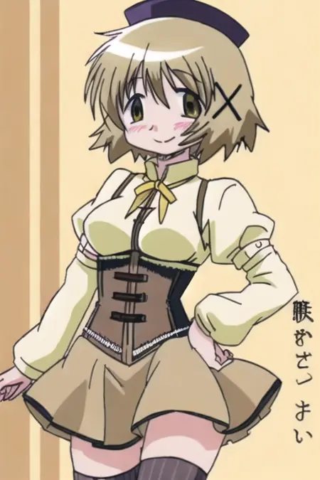 一个训练有素的LoRA,可将《魔法少女小圆》中真壁诗音的魔法少女服装赋予其他角色。