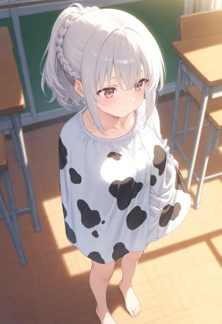 If you want to use a towel with a pattern, you can use “standing”. If you want to use a towel with a pattern, you can use “○○print”, and if you want to change into a school swimsuit, you can use “school swimsuit”.