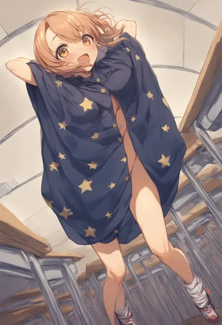 大抵は立って着替えるので standing を入れたり柄物のタオルにするなら ○○print と好きな柄を入れてもらい、スクール水着への着替えが良いなら school swimsuit を入れたりと思い思いのシチュエーションをお試し下さい。