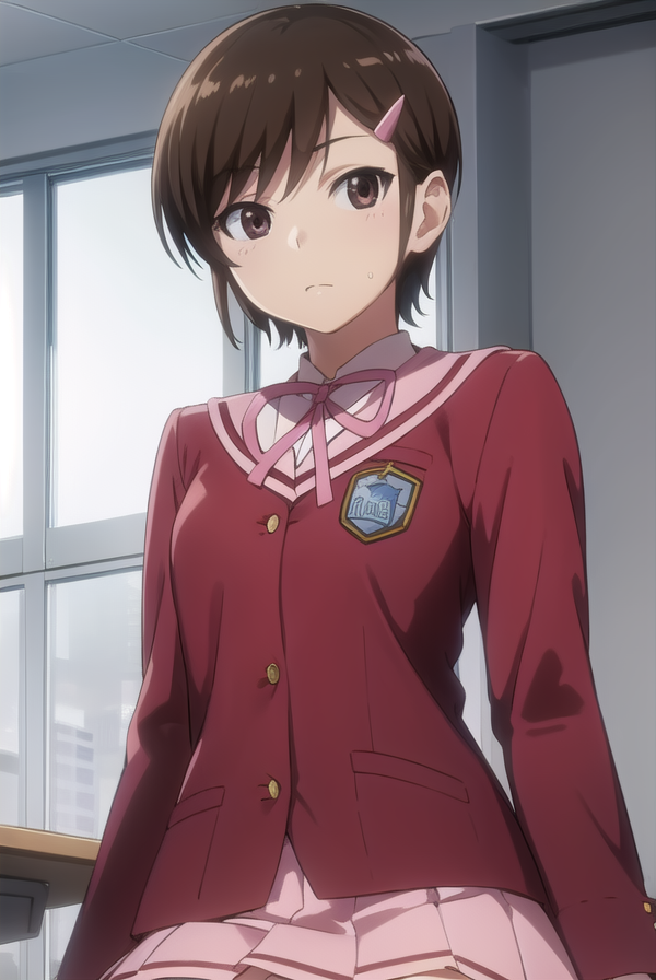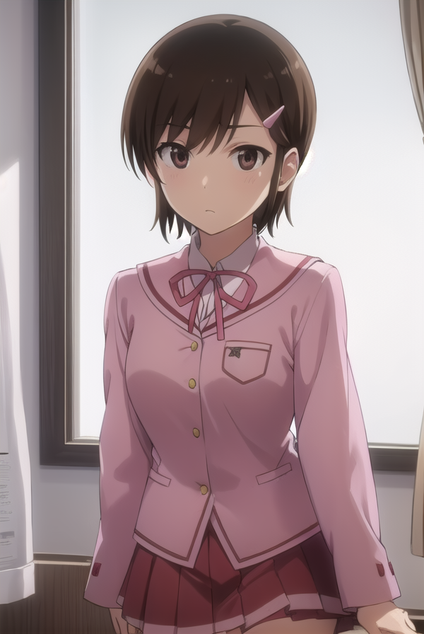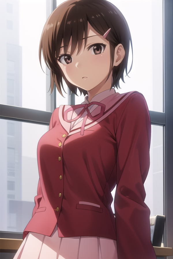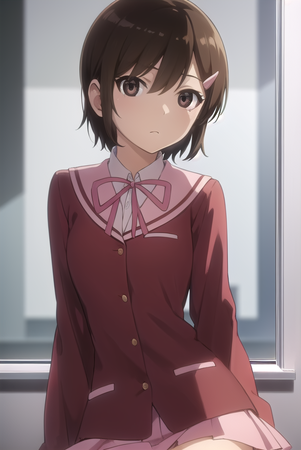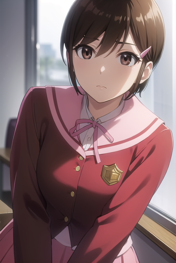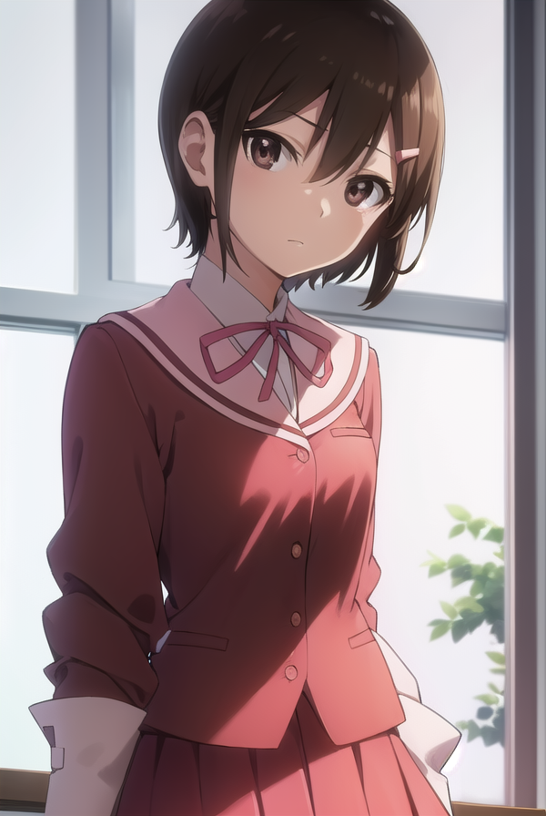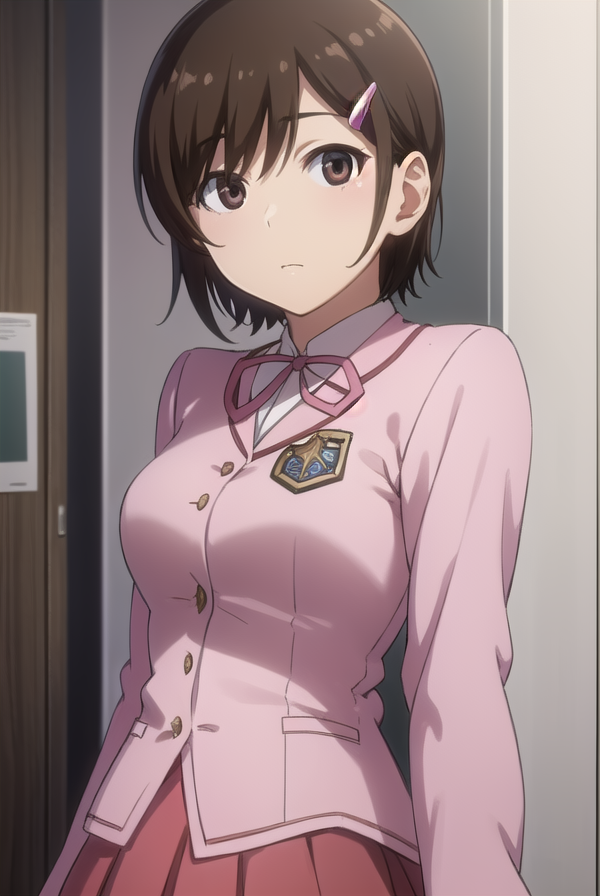 chihiro kosaka, 단발, 갈색 머리, 머리장식, (갈색 눈:1.5), 헤어클립,