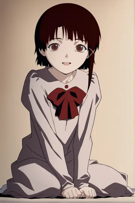 기본 프롬프트: iwakura lain, iwakura_lain_\(sel\)*IL, 1girl, solo, anime screencap,