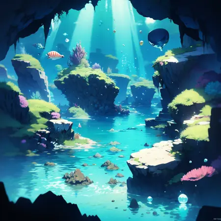 你可以尝试的提示词: yltyxcj, 风景, 无人物, 废墟, 水, 蓝色主题, 楼梯, 树木, 自然, 森林, 桥梁, 柱子, 水晶, 发光, 洞穴, 岩石, 石头, 光粒子。