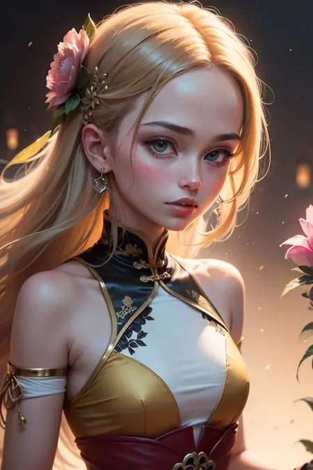 (bare shoulders:0.85), (Glowing ambiance, enchanting radiance, luminous lighting, ethereal atmosphere, mesmerizing glow, evocative hues, captivating coloration, dramatic lighting, enchanting aura),1girl, masterpiece,best quality, 1girl, (upper body:1.2),((nipples:0.55)),(1 Chinese patterns in the middle of the girl's forehead),girl with a weak temperament, epic cinematic, soft nature lights, rim light, absurd, amazing, funny, itricate, hyper detailed, ultra realistic, soft colors, <lora:lowra_v10:0.4> white flower<lora:anxiang:0.65>,<lora:zhongfenghua:0.55:PALETTE>,pink flowers,