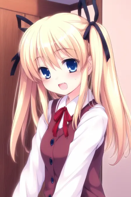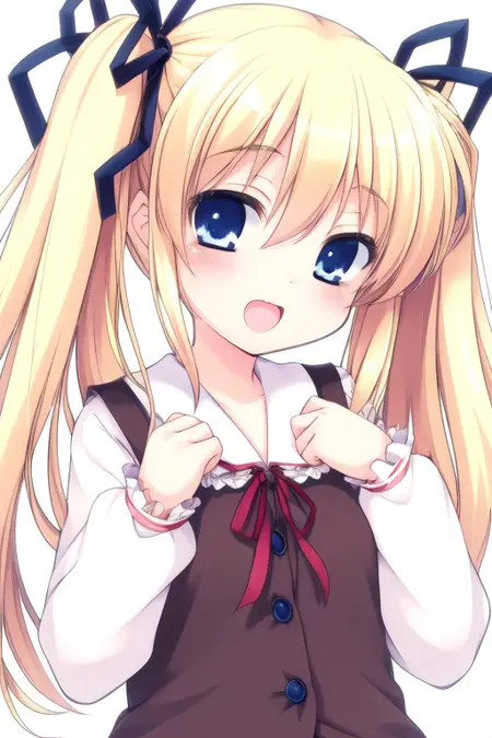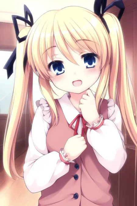 Itsuki&Imi, blonde hair, blue eyes, ribbon, long hair, hair ribbon, twintails, short stack,