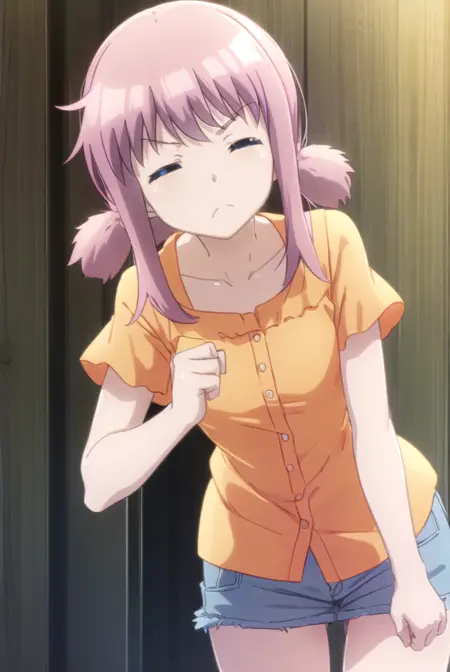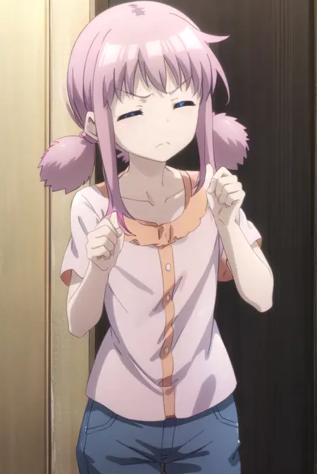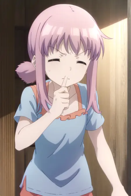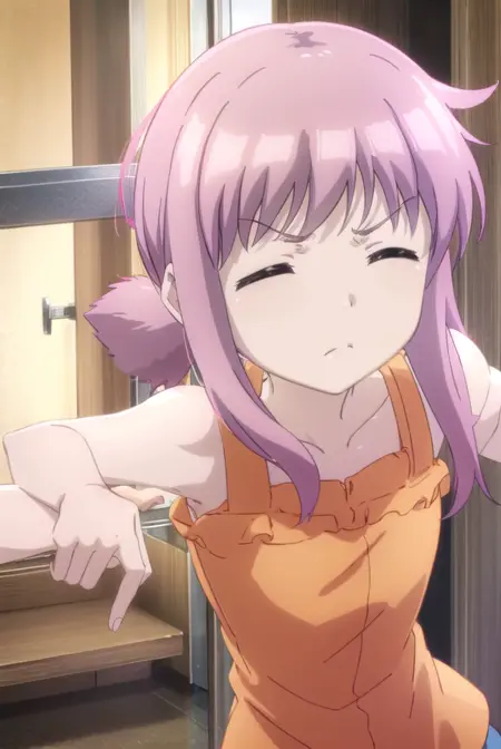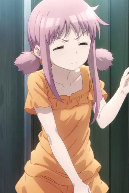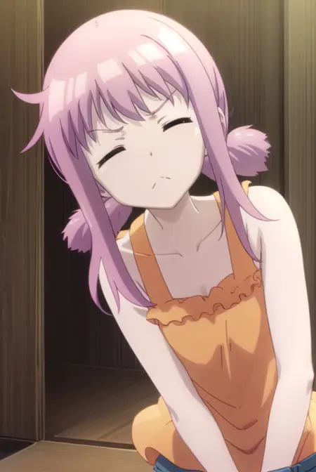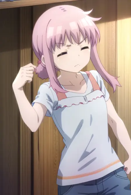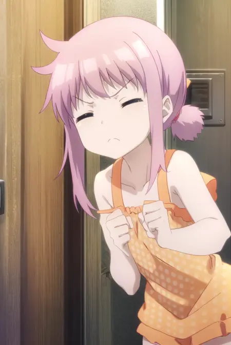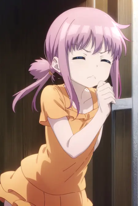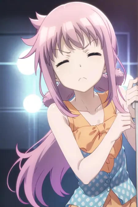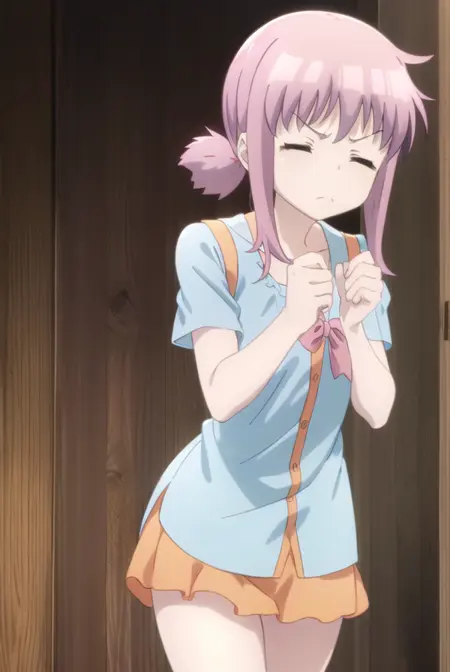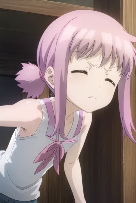 nanaki moriyama, medium hair, (closed eyes:1.5), pink hair,