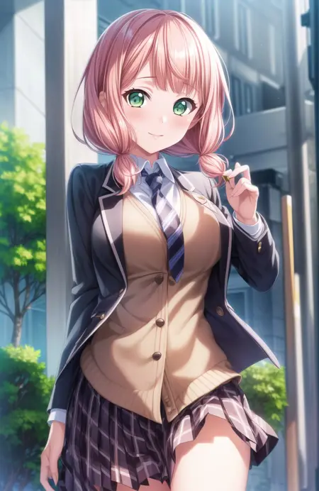 如果你想生成身穿校服的人物图像,请在提示中添加“school uniform, jacket, necktie, pleated skirt”。