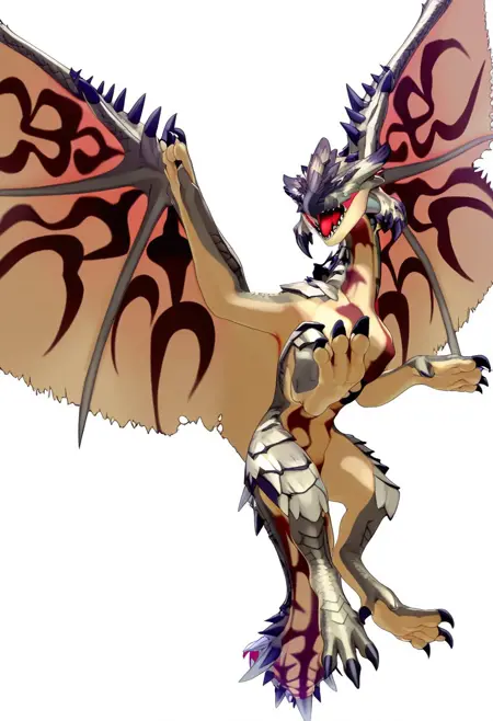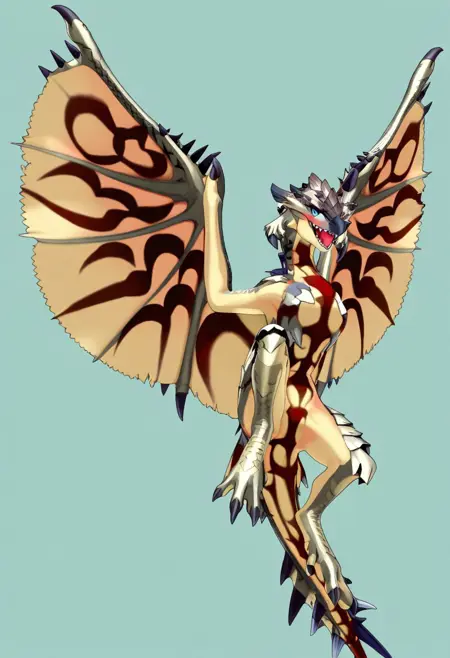 Large Flying Wyverns with sharp, blade-like scales covering their body. Seregios are well-known as extremely territorial and belligerent creatures, wielding their aerial mobility and powerful hind leg attacks in intense combat against other large monsters.