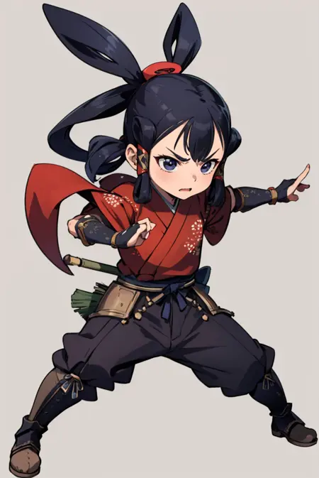 Add "chibi" depending on the base model to get closer to her in-game look. May need to reduce the weight if she becomes too chibi.