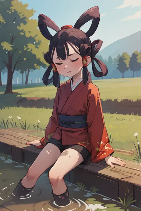 Default outfit: sakunaRR, kimono, hair rings, sandals