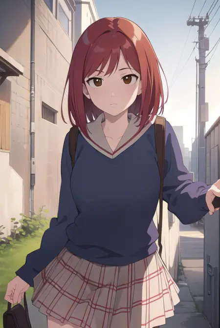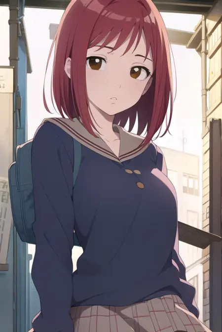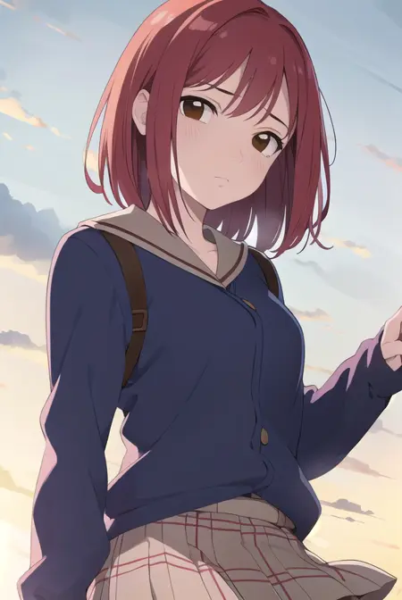 mamimi samejima, short hair, (brown eyes:1.5), red hair,