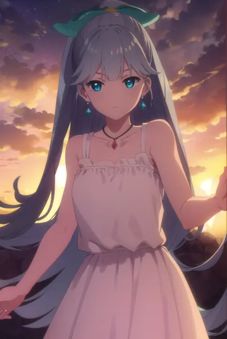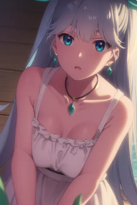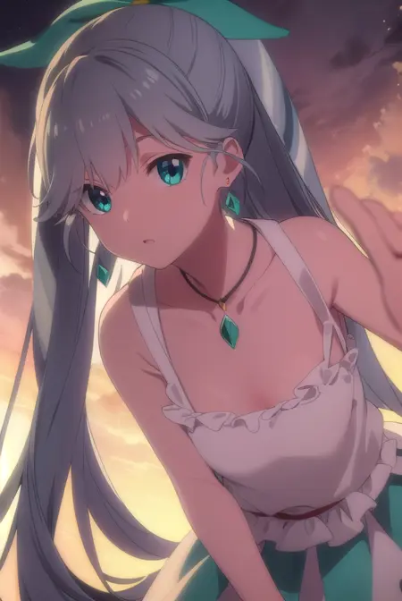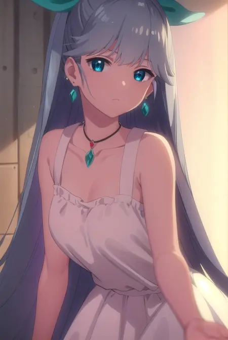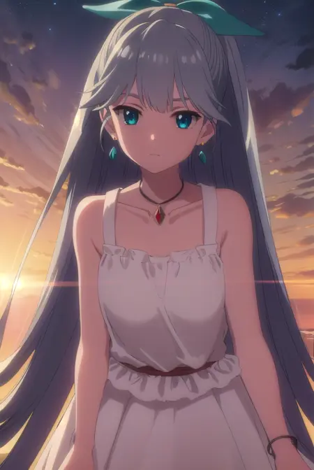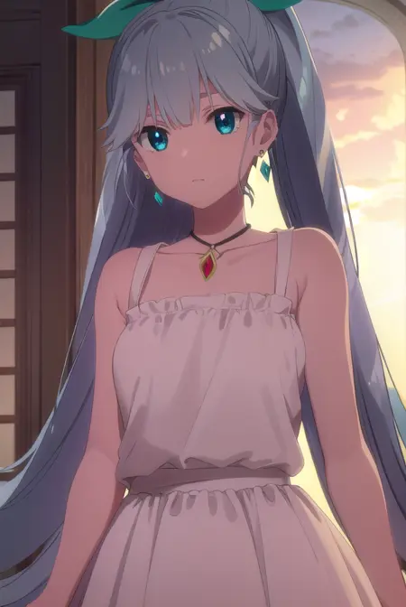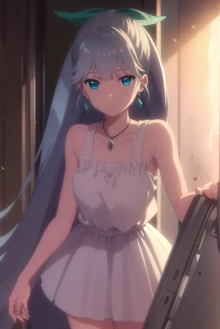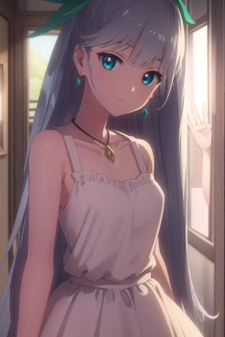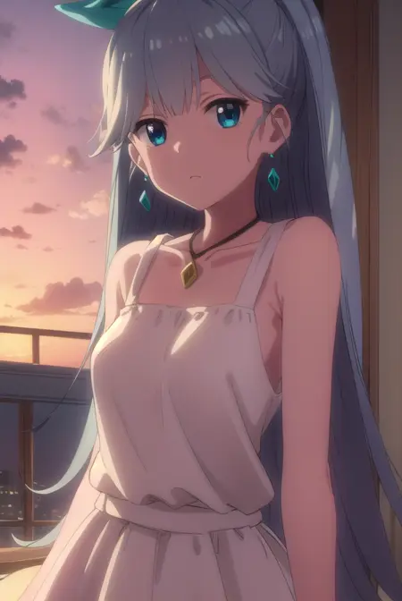 aiko, long hair, very long hair, ponytail, aqua eyes, ribbon, hair ribbon,