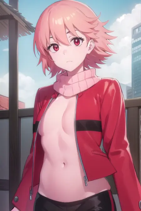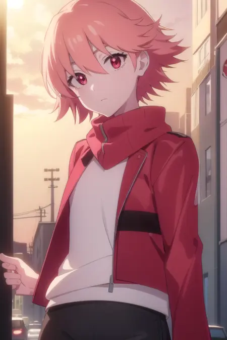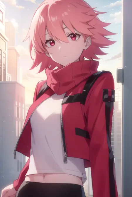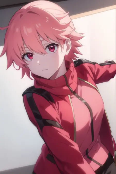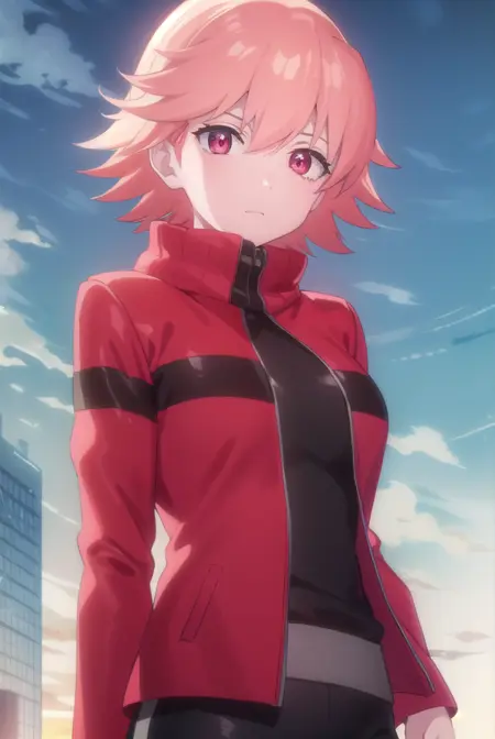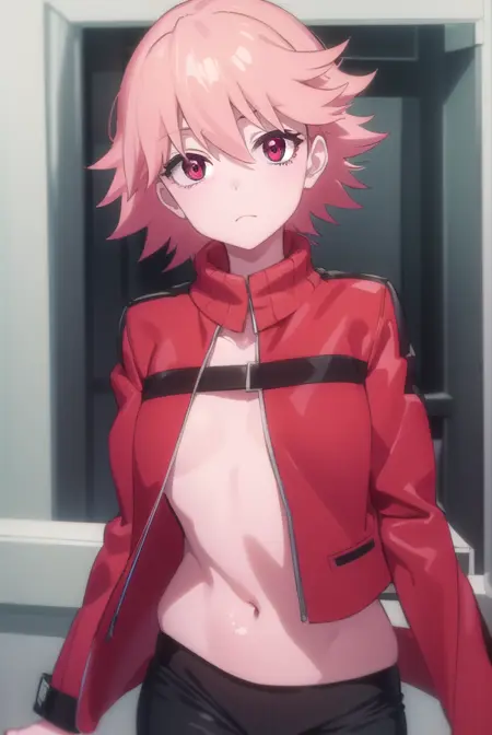 haruko haruhara, short hair, (red eyes:1.3), pink hair,