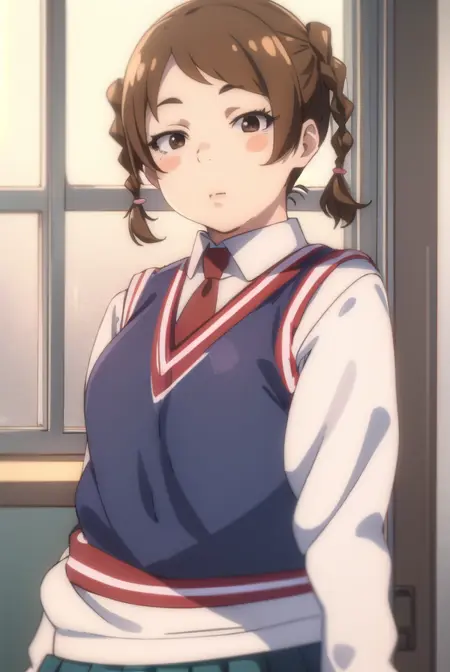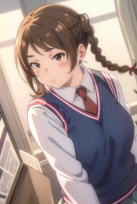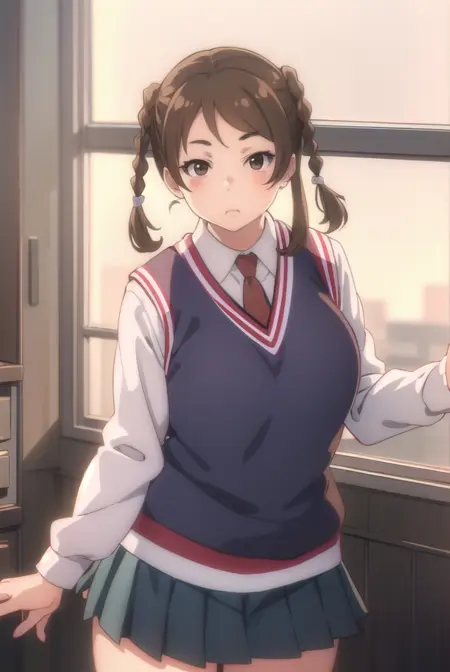 裙子,校服,百褶裙,领带,超短裙,红色领带,背心,针织背心,蓝色针织背心,