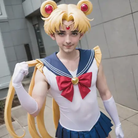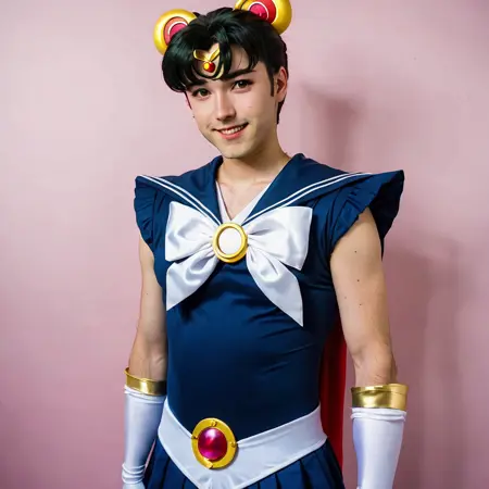 男性水手月亮cosplay,此模型在极小的图像数据集(约11张图片)上训练。