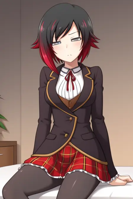 Generally speaking the activation tag will give you the skirt, blazer, shirt and bow. Sometimes you may need to add the article of clothing if the seed is not cooperating. You'll also want to add things like "thighhighs" or "pantyhose" or "cape" if you are trying to get the accurate look for a character