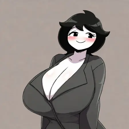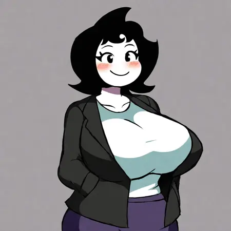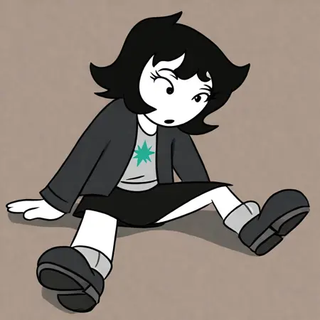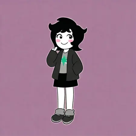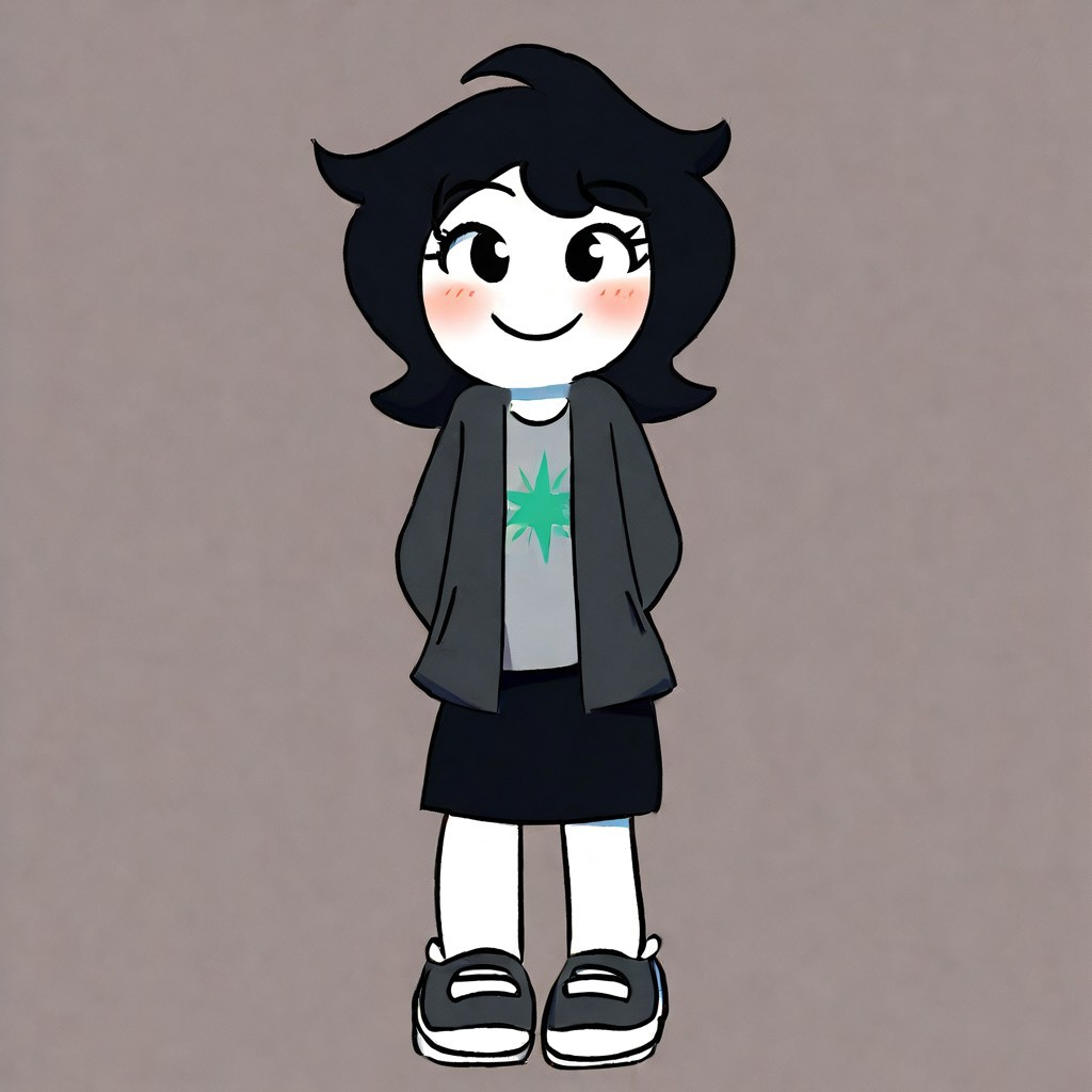1girl, joeyclaire, white skin, black hair, medium hair, jacket, shirt, skirt, shoes,