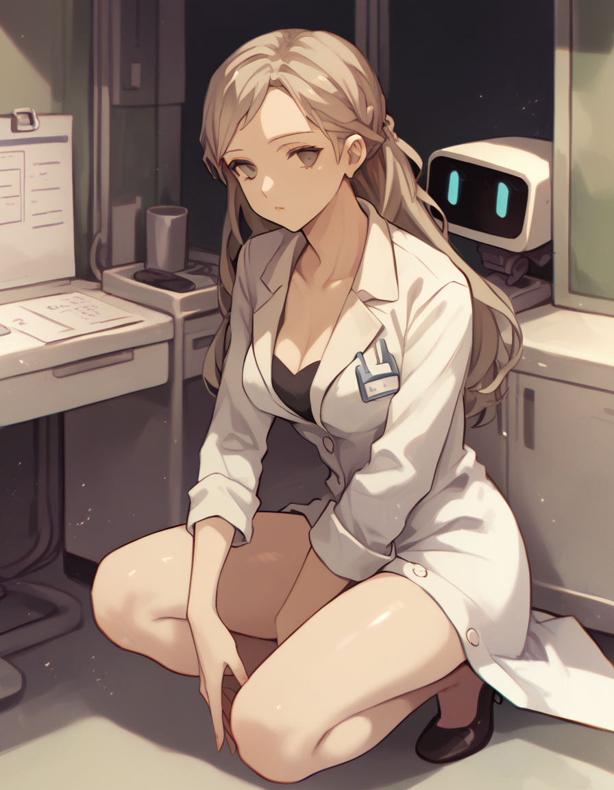 nurse: cleavage, long sleeves, nurse, labcoat, closed coat