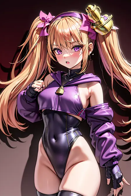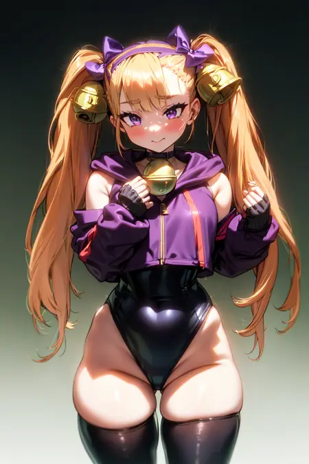 보라색 눈, 금발 머리, 트윈테일, 긴 머리, 헤어밴드, (벨 머리 장식),