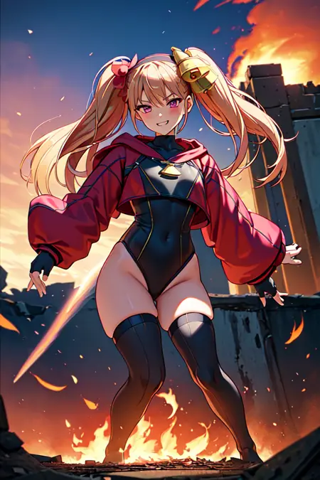 lora:ririnchan_V02:0.8리린, 허벅지, 가려진 배꼽,