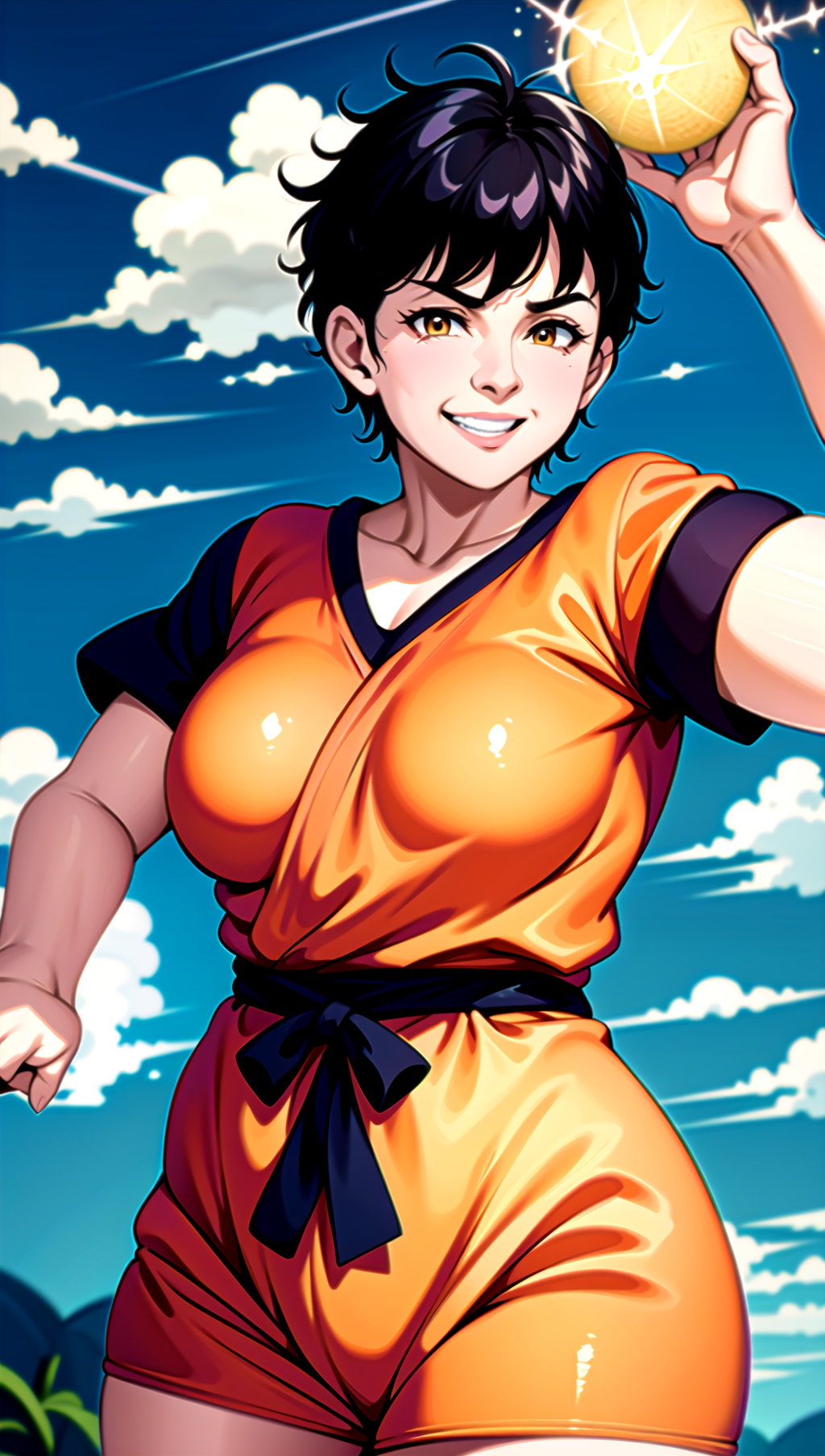 胸の大きさは巨乳(huge breast)から貧乳(flat chest)まで可能です