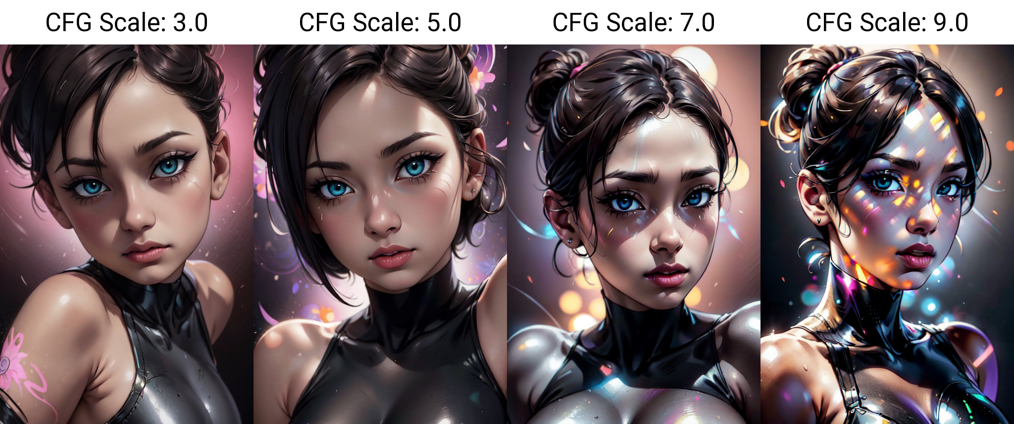CFG: I use 3, I would avoid going too high.. 3-5 seems about right.