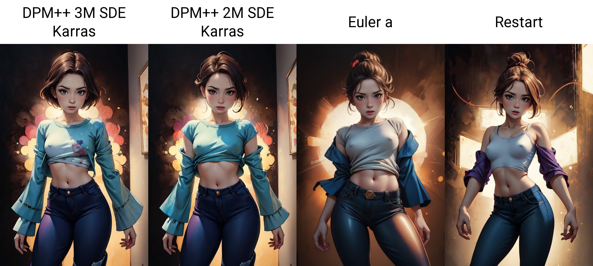 Sampler: I personally use DPM++ 3M SDE Karras but Euler A is solid. I have a couple example images above.