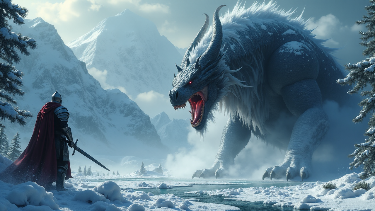 "an action shot of a knight fighting a giant fantasy ice phoenix, graveyard in background, Bosstyle, hkstyle, HD, masterpiece, best quality, hyper detailed, ultra detailed, super realistic, bosstyle lora:FluxBossBattle:0.9 "