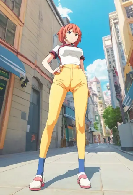 Trigger words: cameltoe, large cameltoe, jeans, pants, denim, denim pants, denim shorts, torn jeans, yoga pants, shorts, short shorts, panties, lingerie, bodysuit, swimsuit, suit, leotard, bikini, spandex, leather, latex, shiny clothes, fine fabric emphasis.