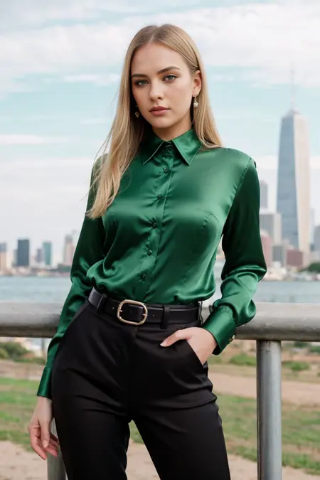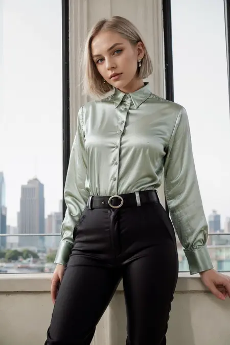 此LoRA适用于一件扣至最上方纽扣的衬衫,具有长袖,并可束入您选择的裙子或裤子中。它非常百搭,可适应各种场合,适用于任何面料和环境。与任何检查点及其他LoRA配合良好,最佳权重范围为0.5 - 0.8。