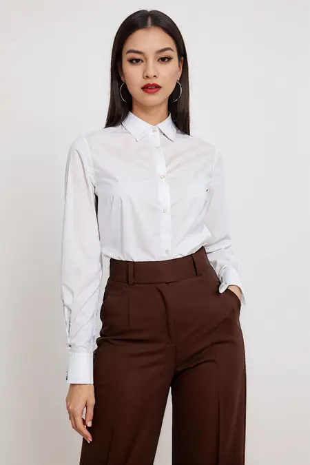 This lora is for a collared shirt, that is fully buttoned, with the top button being fastened. It has long sleeves and also tucks into either a skirt or trousers of your choice. It is very versatile and can be adapted to any situation. It can be any fabric and any conditions. Works well with any checkpoint, also other loras. Best at 0.5 - 0.8