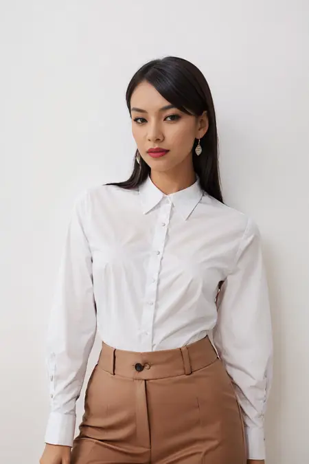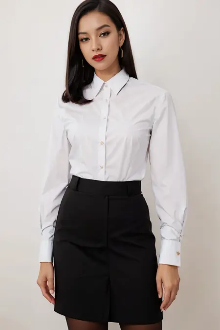 This lora is for a collared shirt, that is fully buttoned, with the top button being fastened. It has long sleeves and also tucks into either a skirt or trousers of your choice. It is very versatile and can be adapted to any situation. It can be any fabric and any conditions. Works well with any checkpoint, also other loras. Best at 0.5 - 0.8
