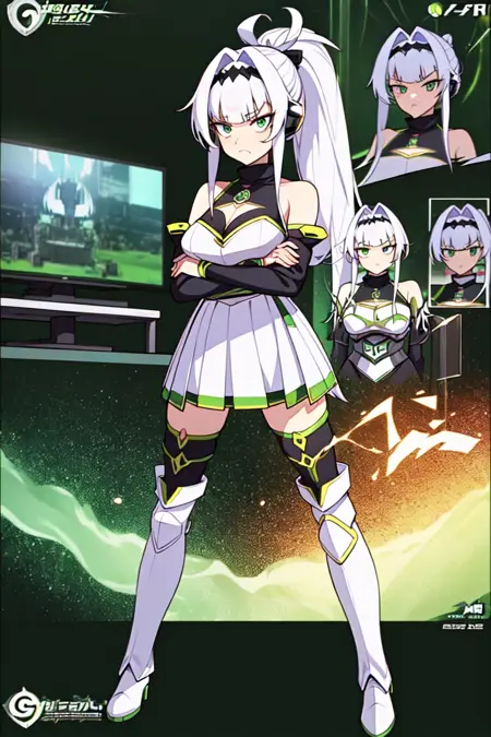 <lora:Kurowa-Chan_IL_V1:0.8>kurowa_chan, green eyes, long hair, ponytail, white hair, grey hair, bangs, hair intakes, black hair ornament, hair bun, blunt bangs, very long hair, hairband, single hair bun, jewelry,