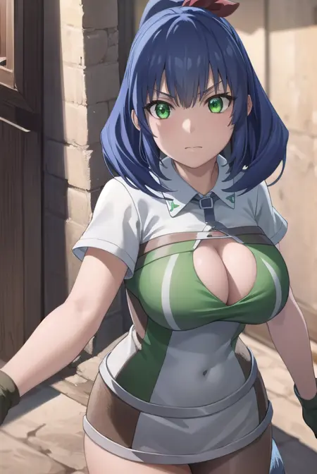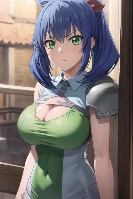 celes, (绿色眼睛:1.3), 蓝色头发, 马尾, 发带, 头发发带,