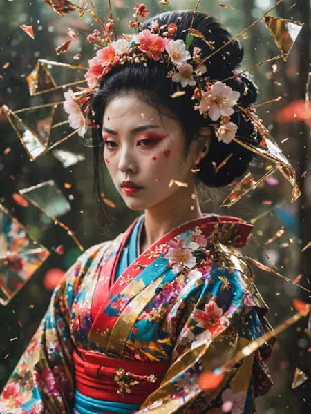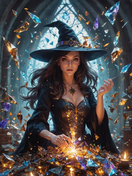 This LoRA adds kaleidoscopic lighting reflections and shattered mirror pieces to create unique stunning visuals and lighting effects.