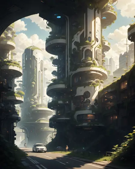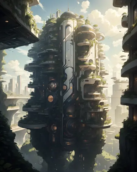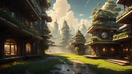 Solarpunk stories are often set in a technologically advanced world, but also in a humane and natural environment. These stories emphasise the importance of harmony between humans and nature, and the idea that technological developments should have a positive impact on society and the environment. In Solarpunk stories, people may use solar panels, wind power and other clean energy sources to build green buildings and redesign cities into more humane and eco-friendly spaces.