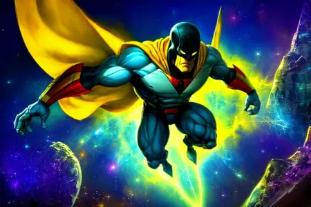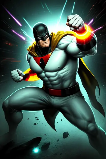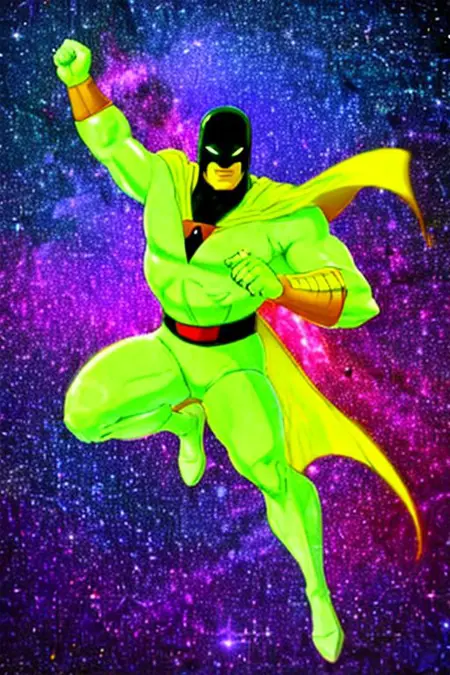 1960s Cartoon Superhero Space Ghost. It should create some colorful space background as well.
