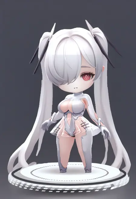 캐릭터 - anachirox, 더블테일, 매우 긴 머리, 한쪽 눈 위의 머리카락, 흰색 머리, 빨간 눈