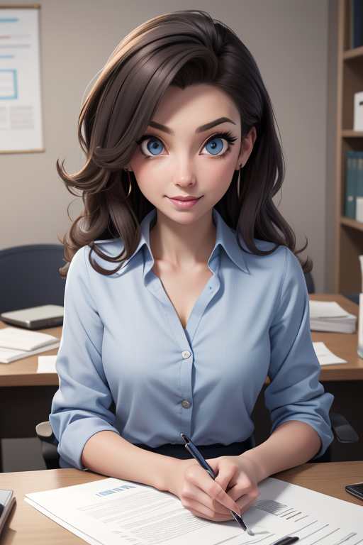 사무실 직원을 모델로 한, 경험이 풍부하고 매우 세็ก시하며 꽤 귀여운 중년 여성 캐릭터를 만들려고 합니다.