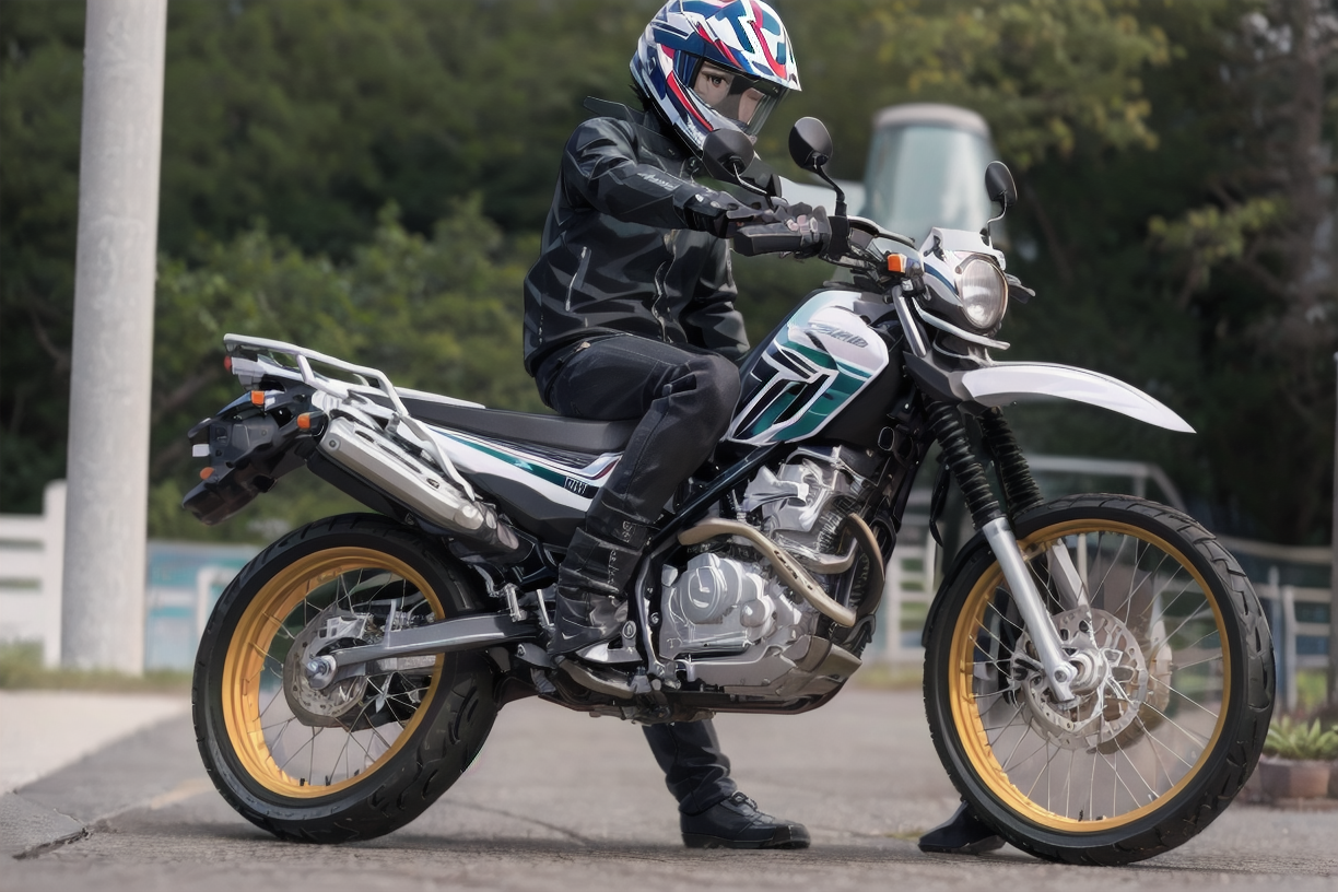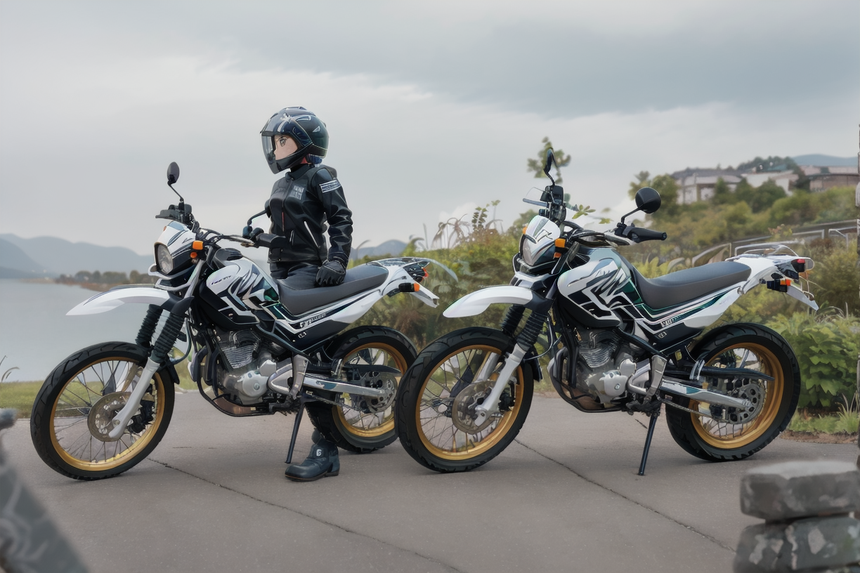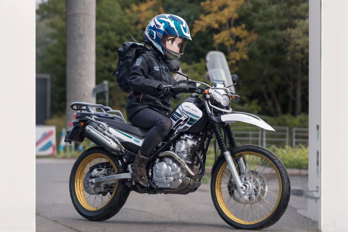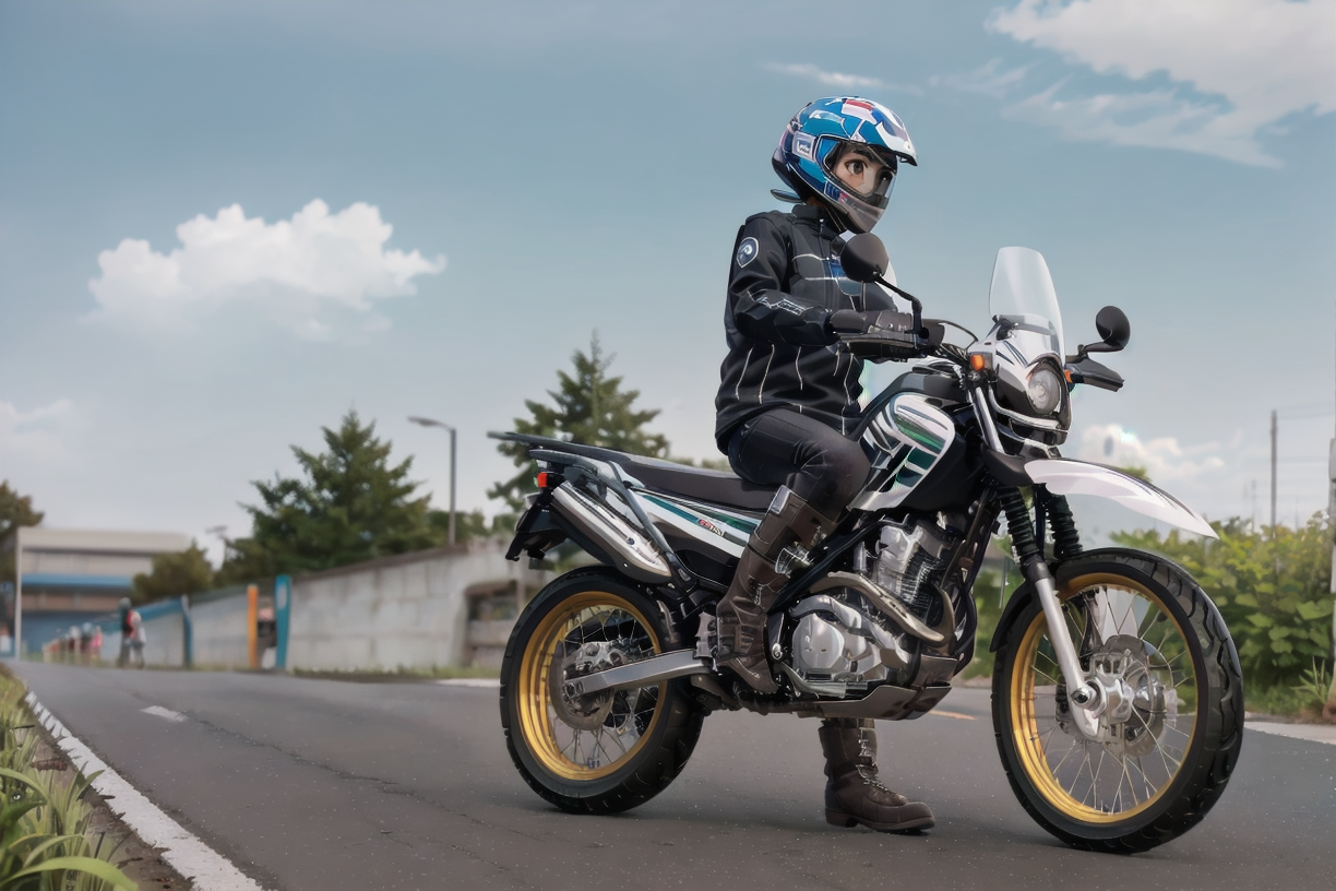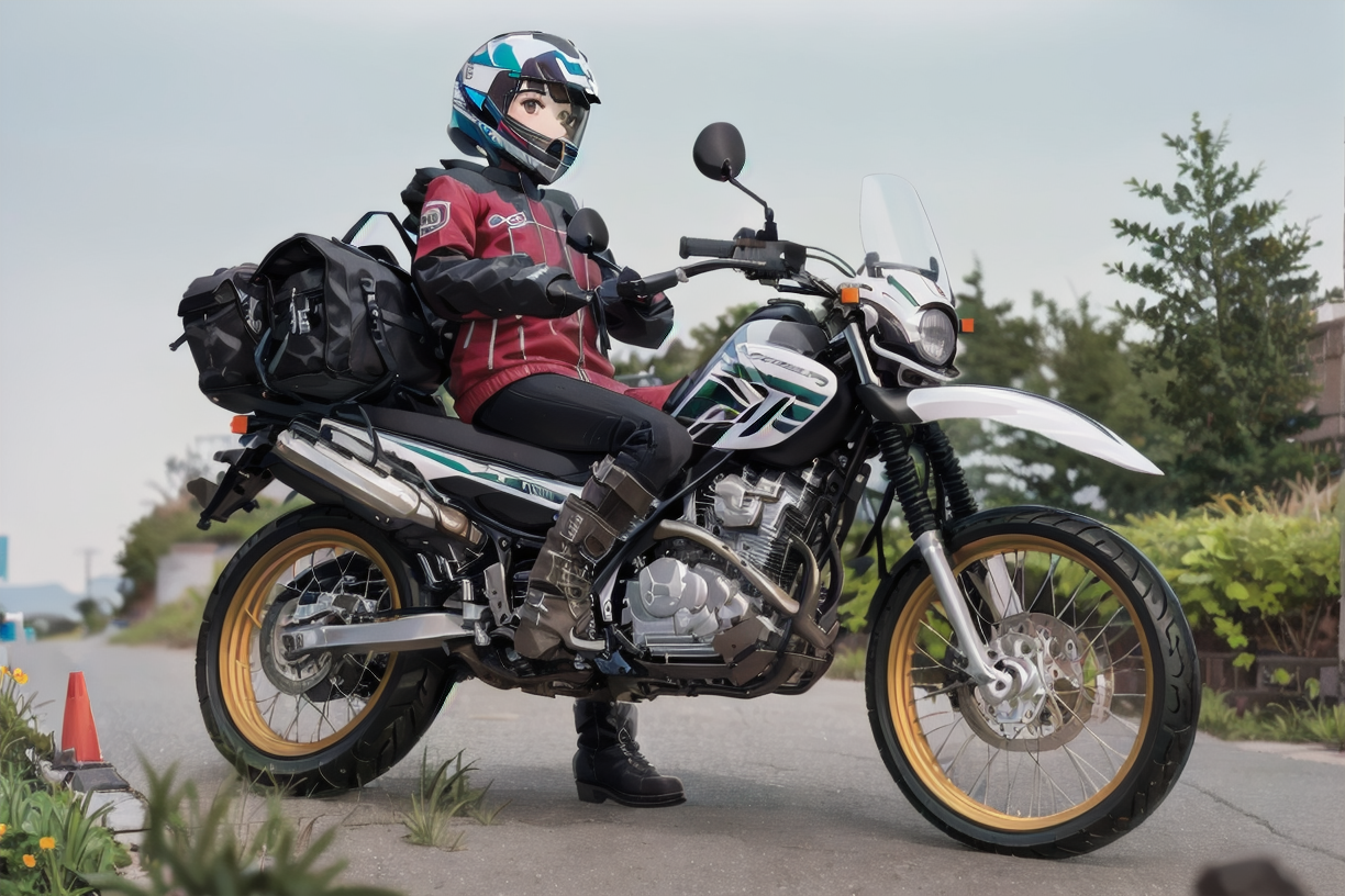 This is a LoRA that could possibly illustrate a motorcycle that looks like a Yamaha motorcycle SEROW 250 (DG17J). これはヤマハのオートバイ セロー250(DG17J)っぽいオートバイのイラストをもしかすると描くことができるかもしれないLoRAです。