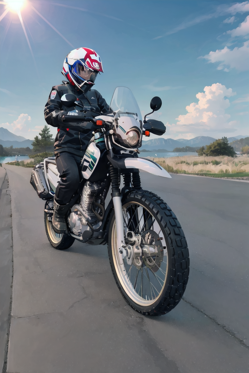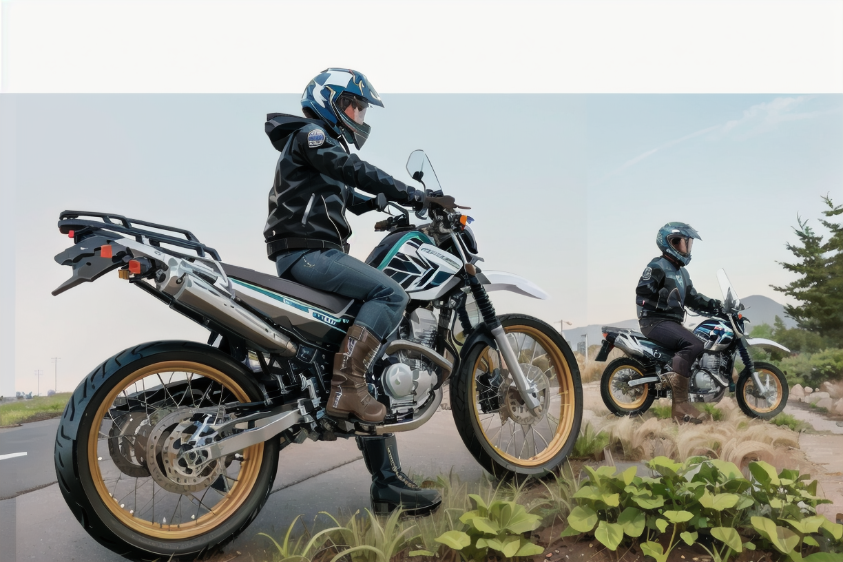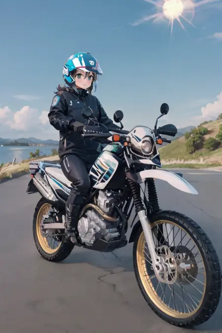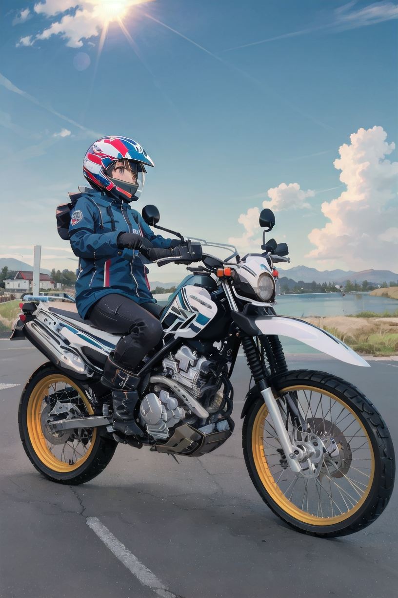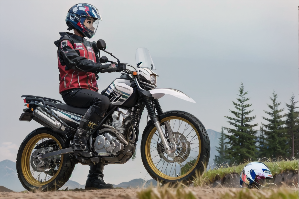This is a LoRA that could possibly illustrate a motorcycle that looks like a Yamaha motorcycle SEROW 250 (DG17J). これはヤマハのオートバイ セロー250(DG17J)っぽいオートバイのイラストをもしかすると描くことができるかもしれないLoRAです。