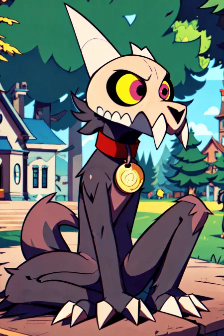 - 触发词:1boy, 头骨头盔, 牙齿, pokemon(生物), 彩色巩膜, 带圆形宠物标签的红色项圈, 爪子, 尾巴