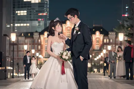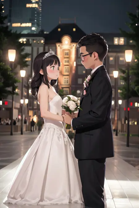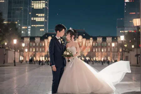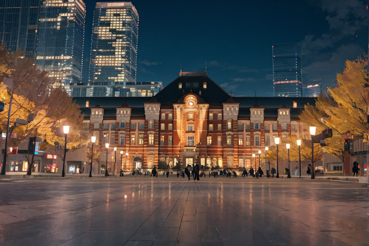 This is LoRA, which could possibly illustrate a Marunouchi Station Square-like landscape at Tokyo Station. これは東京駅の丸の内駅前広場っぽい風景のイラストをもしかすると描くことができるかもしれないLoRAです。