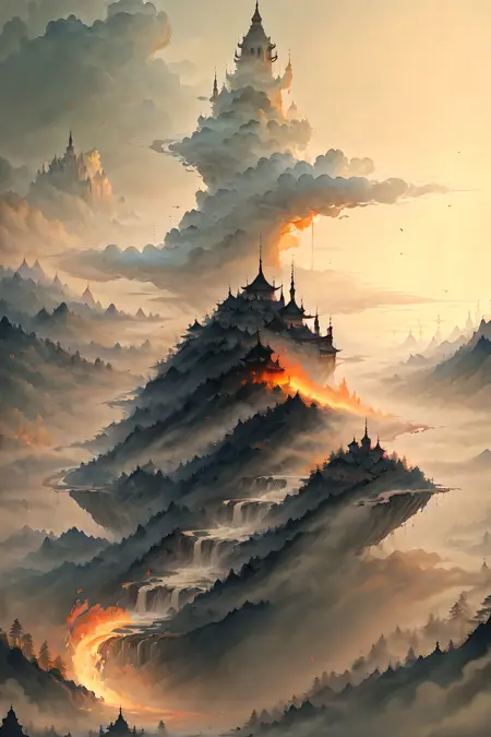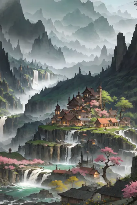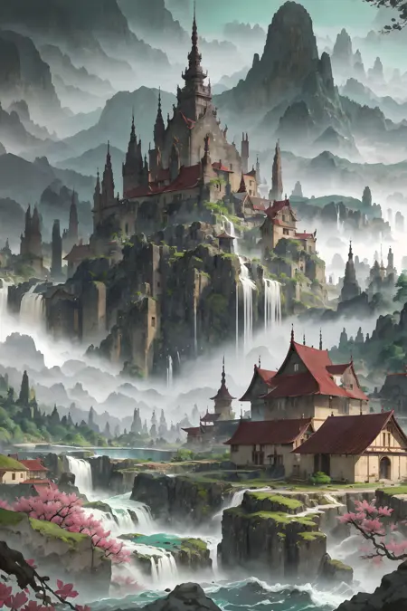 첫 번째 예시 플롯에서 사용한 XYZ 축 스크립트로 생성된 동일한 시드 비교 플롯입니다. 0.8의 가중치에서 더 많은 구름과 더 낭만적인 건축물이 생성된 것을 명확히 확인할 수 있습니다. 전체 구성도 크게 변화하였습니다. 아래를 주의 깊게 살펴보세요: