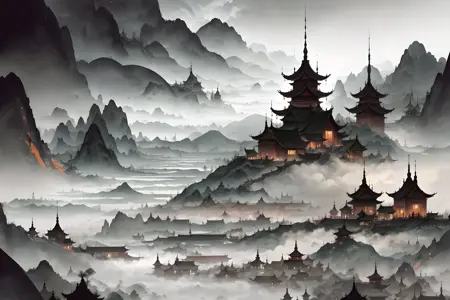 첫 번째 예시 플롯에서 사용한 XYZ 축 스크립트로 생성된 동일한 시드 비교 플롯입니다. 0.8의 가중치에서 더 많은 구름과 더 아련한 건축물이 생성된 것이 뚜렷하게 확인됩니다. 전체 구성도 큰 변화를 겪었습니다. 아래 사항을 주목해 주세요: