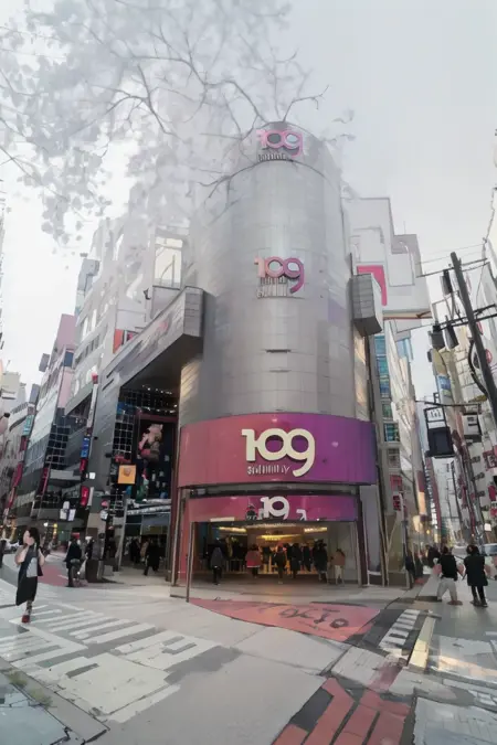 これは東京渋谷にあるビル「SHIBUYA109」のイラストをもしかすると描くことができるかもしれないLoRAです。