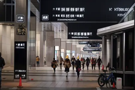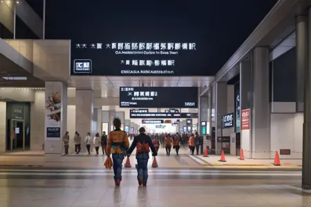 abenobashieki, 6+boys, train station, multiple boys, real world location, multiple girls, night, bag, scenery, walking
