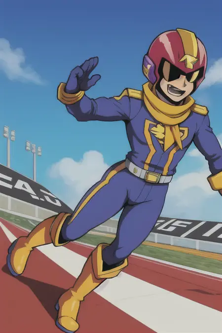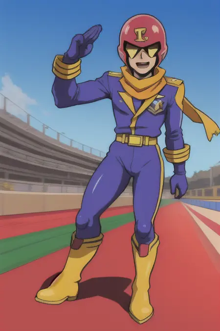 트리거 단어: 빨간 헬멧, 스카프, 골드 부츠, 장갑, 파란 수트,